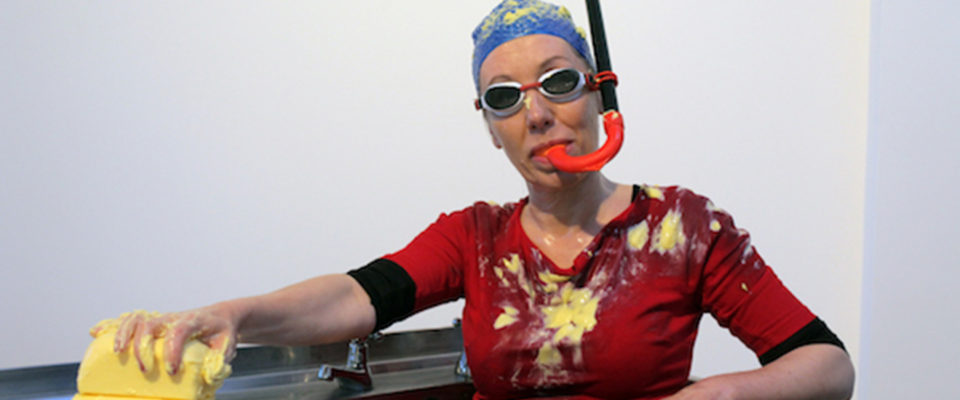 Buttered Up tells the story of a performance artist who embarks on an improbable journey to explore a visceral underworld of domesticity. She uses a practical method of escapology, quantities of butter and a complete suspension of disbelief to undergo an unusual metamorphosis. The protagonist evades entrapment … or is the domestic frame itself a means of escape?