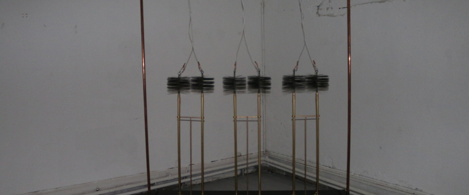 Margaret O’Brien works primarily with installation and sculpture using a variety of materials such as electrical currents, live sound, light, and kinetics. Her work explores the nature of the in-between as psychological aspects of the everyday that can never be fully understood or articulated, and our individual negotiations of time and space within this. Using particular practices of repetition, non-linear concepts of time and space are presented in the work as past, present and future dimensions occur almost simultaneously through the consistency of the repeat. Here, repetition is used to undermine any fixed reading of the work, creating both movement and stoppage by continuously presenting the possibility of an alternative.
