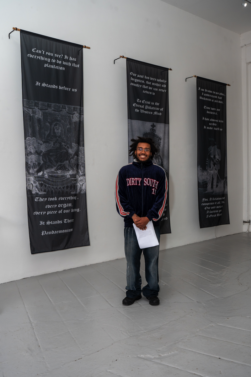 Isaac Harris is a writer and artist from Virginia whose practice interrogates cultural and historical narratives through fiction. Their work explores themes of memory, the absurdity of Black identity, and the fluidity of power, focusing on narratives set in and around Virginia and the greater Black diaspora in the Atlantic world. Isaac is the author of Blaxploitation Burner Tape (Waterwings Press, 2023) and Ghetty Gospel (Ethel Zine, 2021, US; Peanut Press, 2021, Scotland). Recent work has appeared in Deleuzine (2023) and in Francis Jones and Josie Perry’s The Thieves, Centre for Contemporary Art, Glasgow (2024). Isaac holds a degree in Linguistics and History from the University of Edinburgh and currently resides in the Shenandoah Valley region of Virginia.