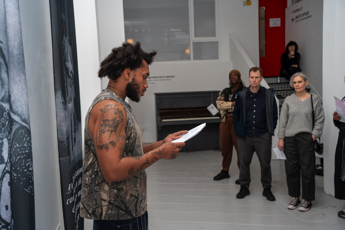 In this exhibition, featuring work mediated through prose, speech, and song, three artists working across the Black Atlantic—Clodagh Boyce (Ireland/USA), Jordan/Martin Hell (UK/USA), and Isaac Harris (UK/USA)—meet in Dublin to engage in a dialogue. The exhibition highlights the practices of Black artists who write, emphasising the power of language to construct and deconstruct the intangible frameworks that shape our lives.