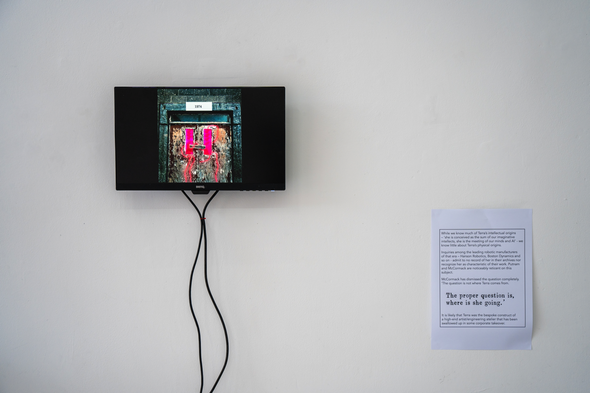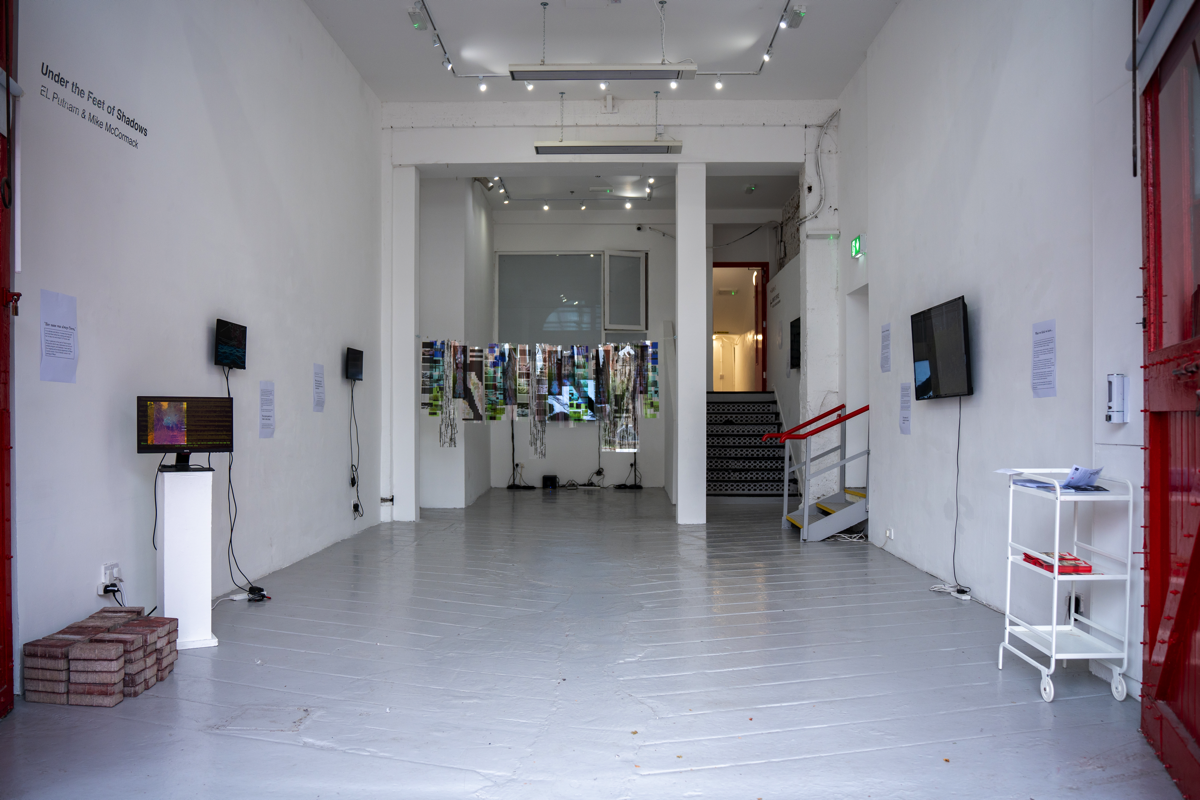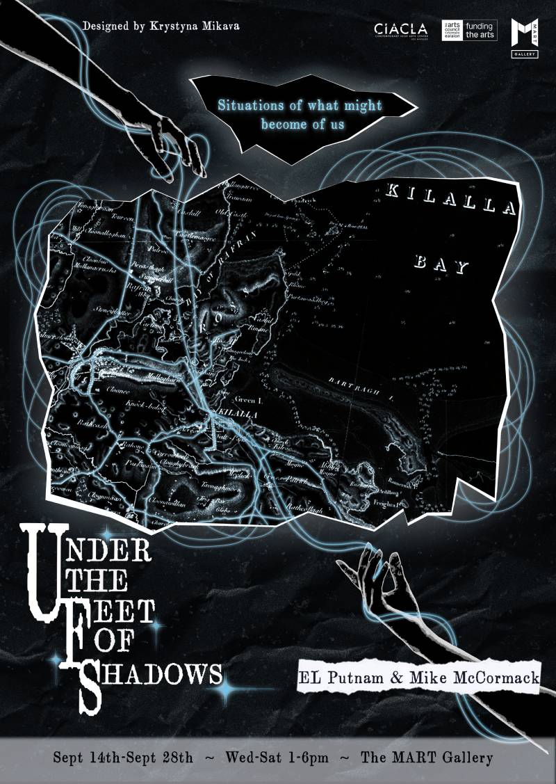 Under the Feet of Shadows is a multimedia artwork developed by EL Putnam and Mike McCormack that creatively explores human-technological relations, speculating other futures in these times of extreme change and crisis. It tells a fictional origin myth of a data center in Kilalla, Ireland, where the cyborg Terra is called upon to negotiate between the spiritus of technology, the environment, and human society as an entangled ecology. The work merges science fiction with folklore, imagined and actual mythologies with histories of technology in Ireland.