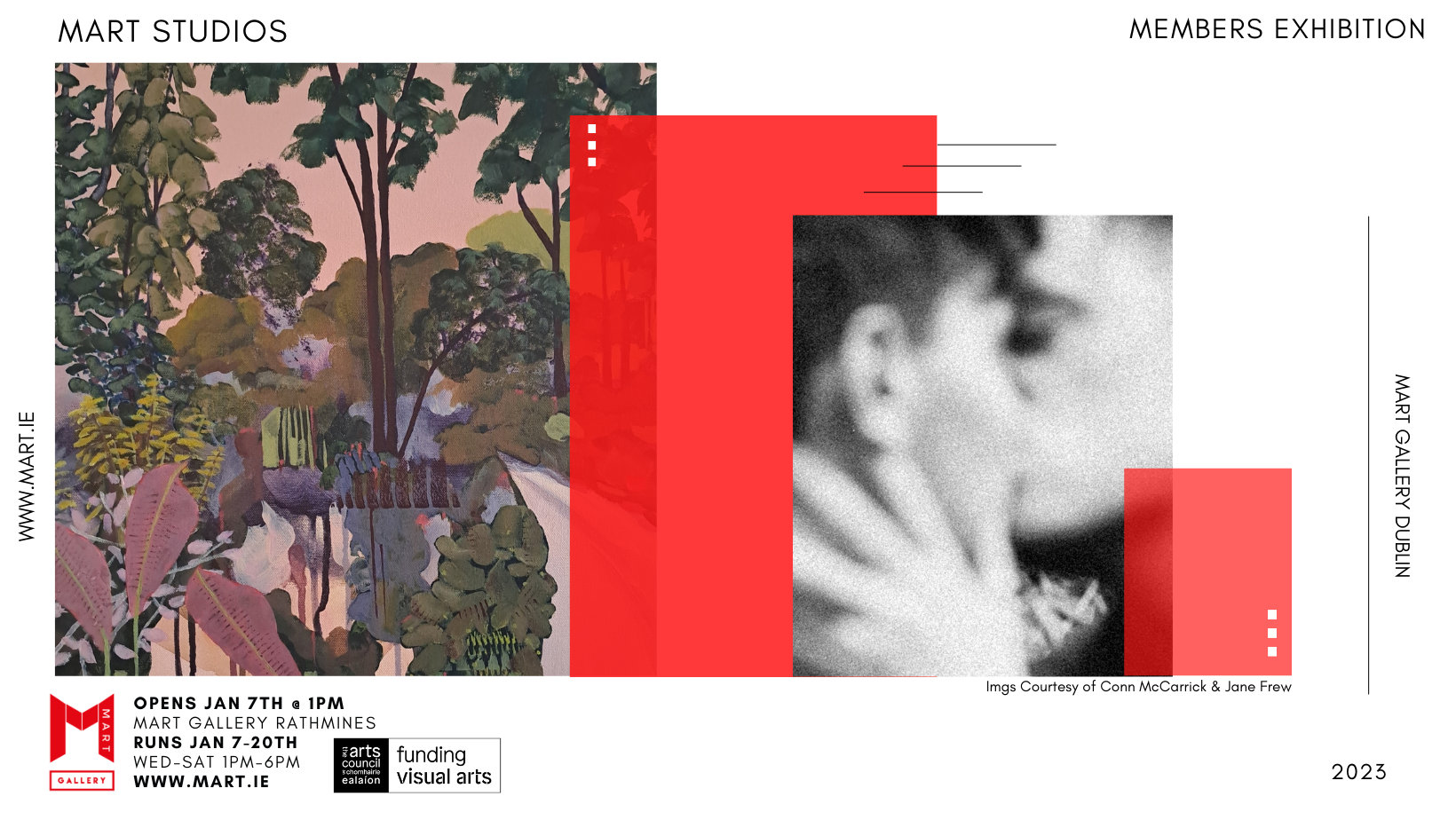 For our annual Studio Members Exhibition, the Directors of MART Ciara Scanlan and Matthew Nevin are delighted to present a curated selection of Visual Artists working in our MART studio network in Dublin and associated Artists.